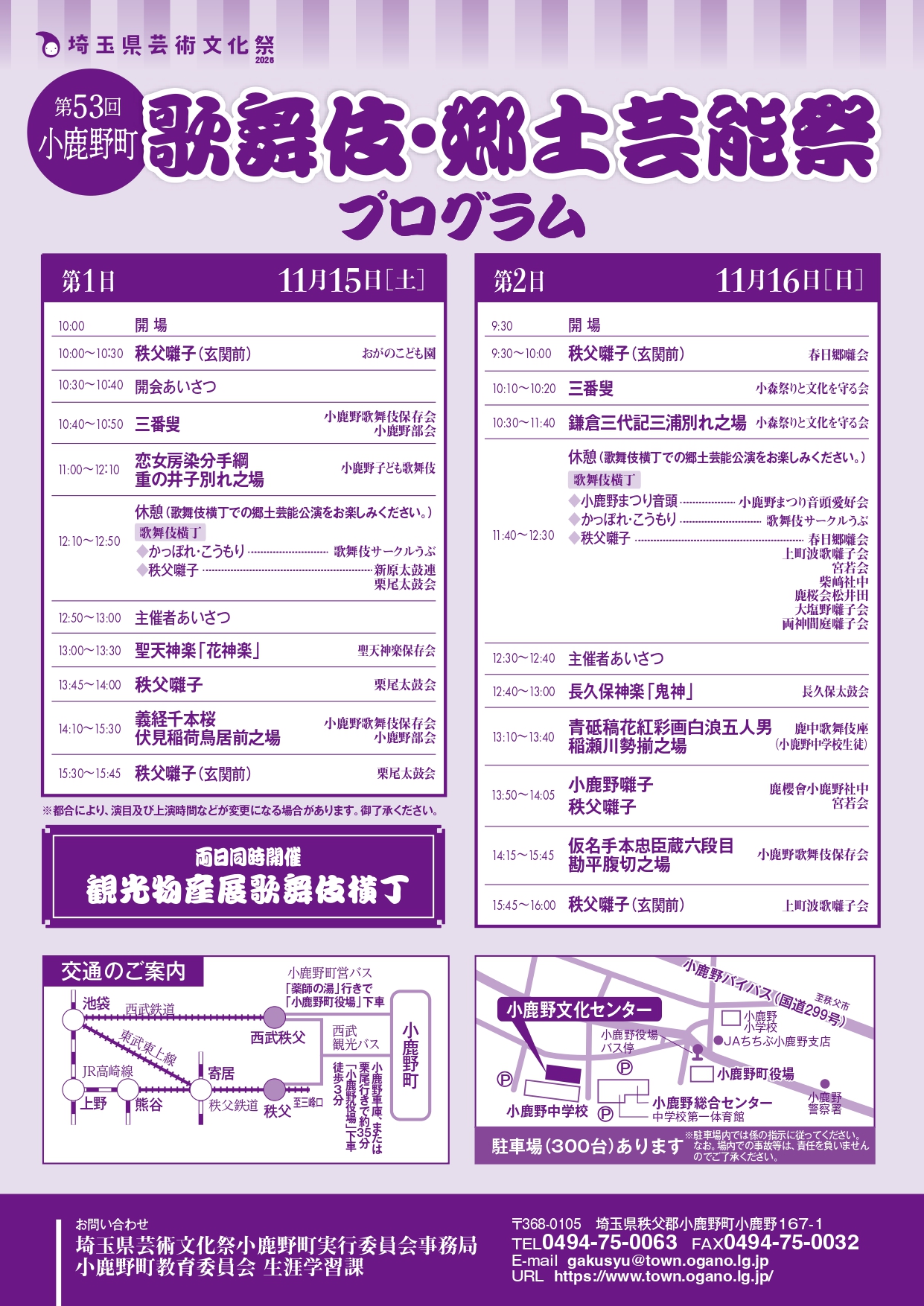 埼玉県芸術文化祭小鹿野町実行委員会事務局(小鹿野町文化センター内 小鹿野町教育委員会生涯学習課)