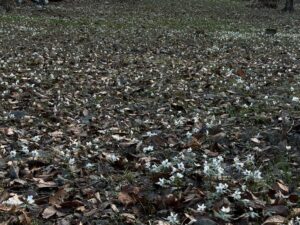 寒さのため引き続き見頃となっています。アズマイチゲも数が増えてきましたが開花はしていません。