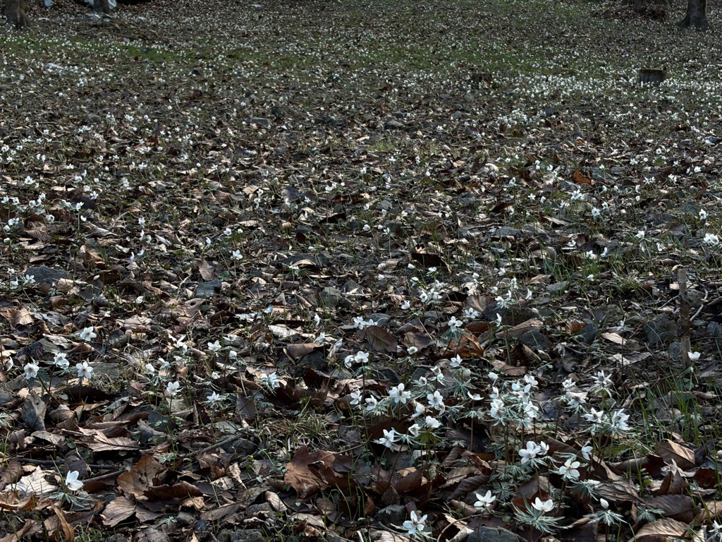 アズマイチゲの開花が始まりました。例年に比べて数が多いです。