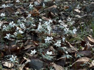 開花の早かった区画では花数が少なくなってきました。アズマイチゲは花芽が多数上がってきましたが、開花には至っていません。